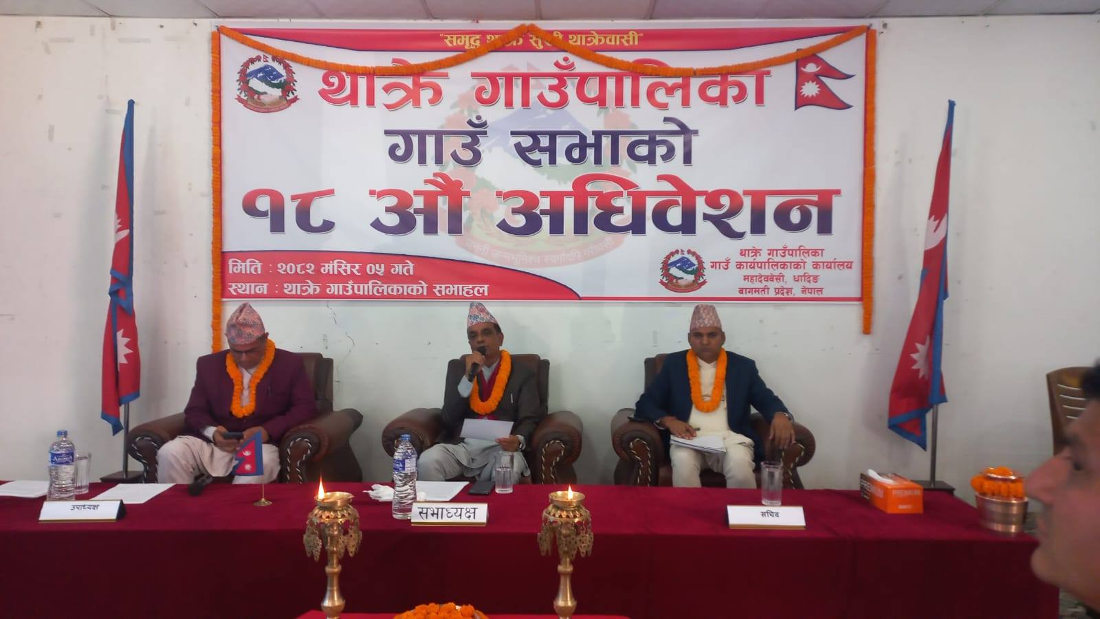 थाक्रे गाउँपालिकाको १८ औं अधिवेशन सम्पन्न भएको छ।