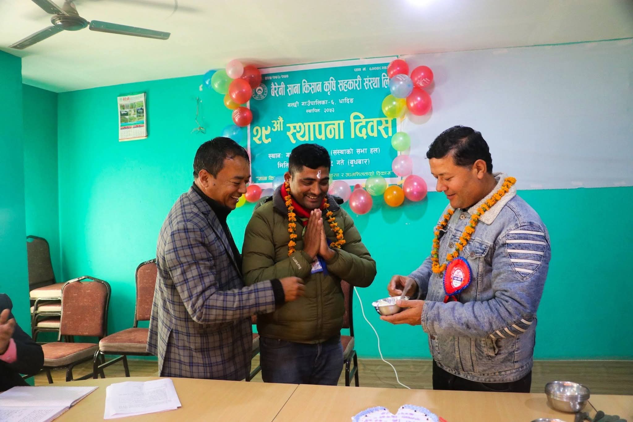 कार्यक्रमका सभा अध्यक्ष तथा सहकारीका अध्यक्ष बद्री प्रसाद अधिकारीले सहकारीको हालसम्मको यात्रा, उपलब्धि र आगामी योजनाबारे प्रकाश पार्नुभयो। आफू अध्यक्ष बनेपछि किसानको हकहितलाई केन्द्रमा राखेर विभिन्न नयाँ र उत्पादनमुखी कार्यक्रमहरू सुरु गरिएको उहाँको भनाइ थियो। बीउ पुँजीका रूपमा बाख्रा वितरण, कृषि उत्पादन वृद्धि गर्ने कार्यक्रम तथा किसानको आम्दानी बढाउने योजनाहरू साना किसान सहकारीले निरन्तर रूपमा सञ्चालन गर्दै आएको उहाँले जानकारी दिनुभयो।