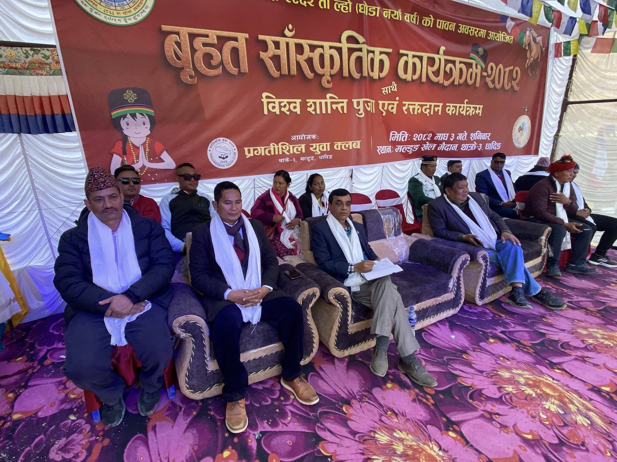 “तामाङ भाषा, धर्म, संस्कृति र पहिचानको जगेर्ना गरौँ । २८६२ औँ सोनाम ल्होछार ता (घोडा) ल्हो भव्यताका साथ मनाऔँ” भन्ने नारासहित प्रगतिशील युवा क्लब थाँक्रे–३ मल्डुङको आयोजनामा कार्यक्रम शनिबार सम्पन्न भएको हो।