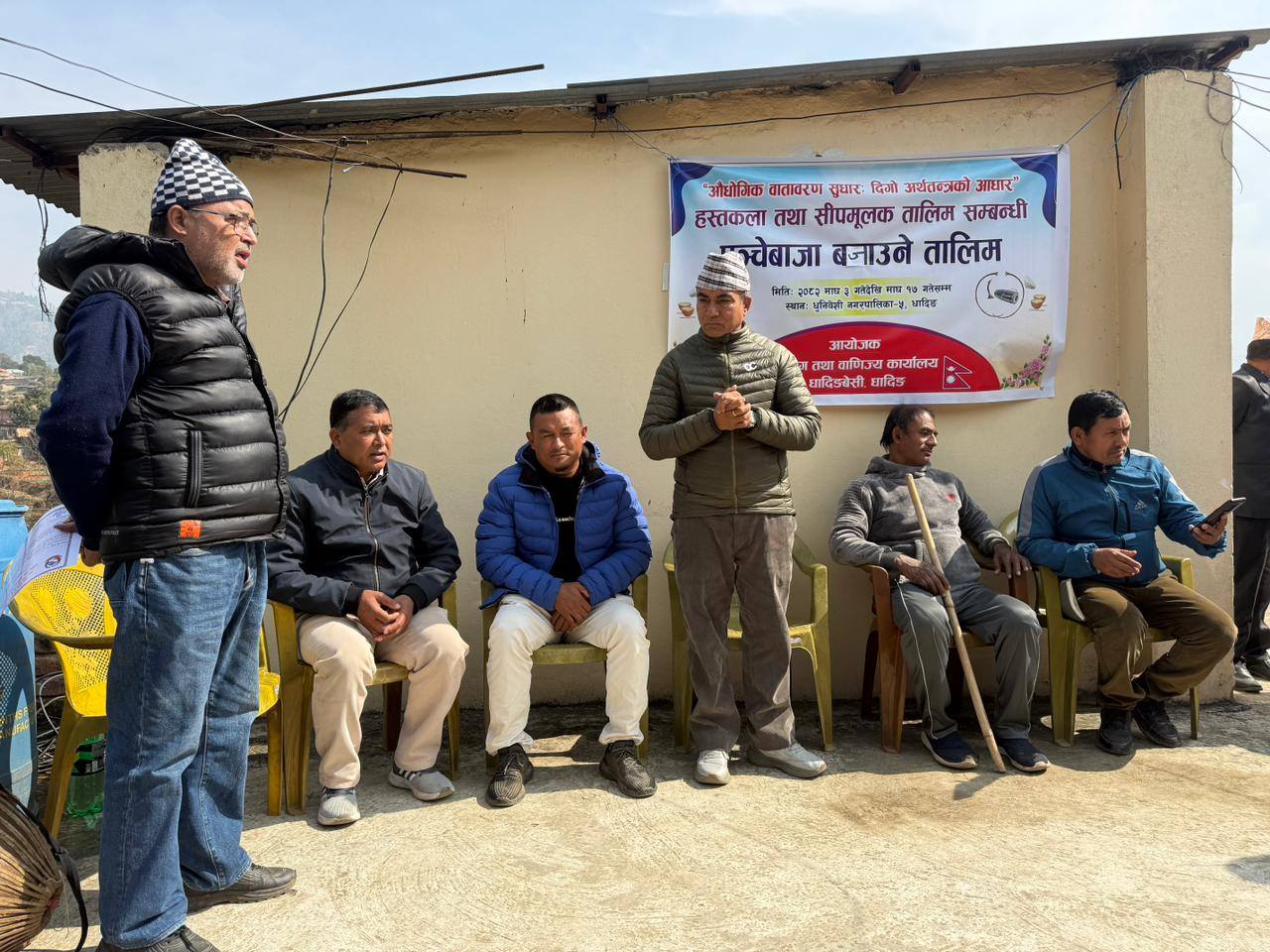 यस्तै, उद्योग तथा वाणिज्य कार्यालय धादिङका प्रमुख तथा कार्यक्रमका अध्यक्ष चुडामणी पुरीले कार्यालयले जिल्लाका विभिन्न स्थानमा हस्तकला तथा सिपमूलक तालिमहरू सञ्चालन गर्दै आइरहेको जानकारी दिनुभयो।