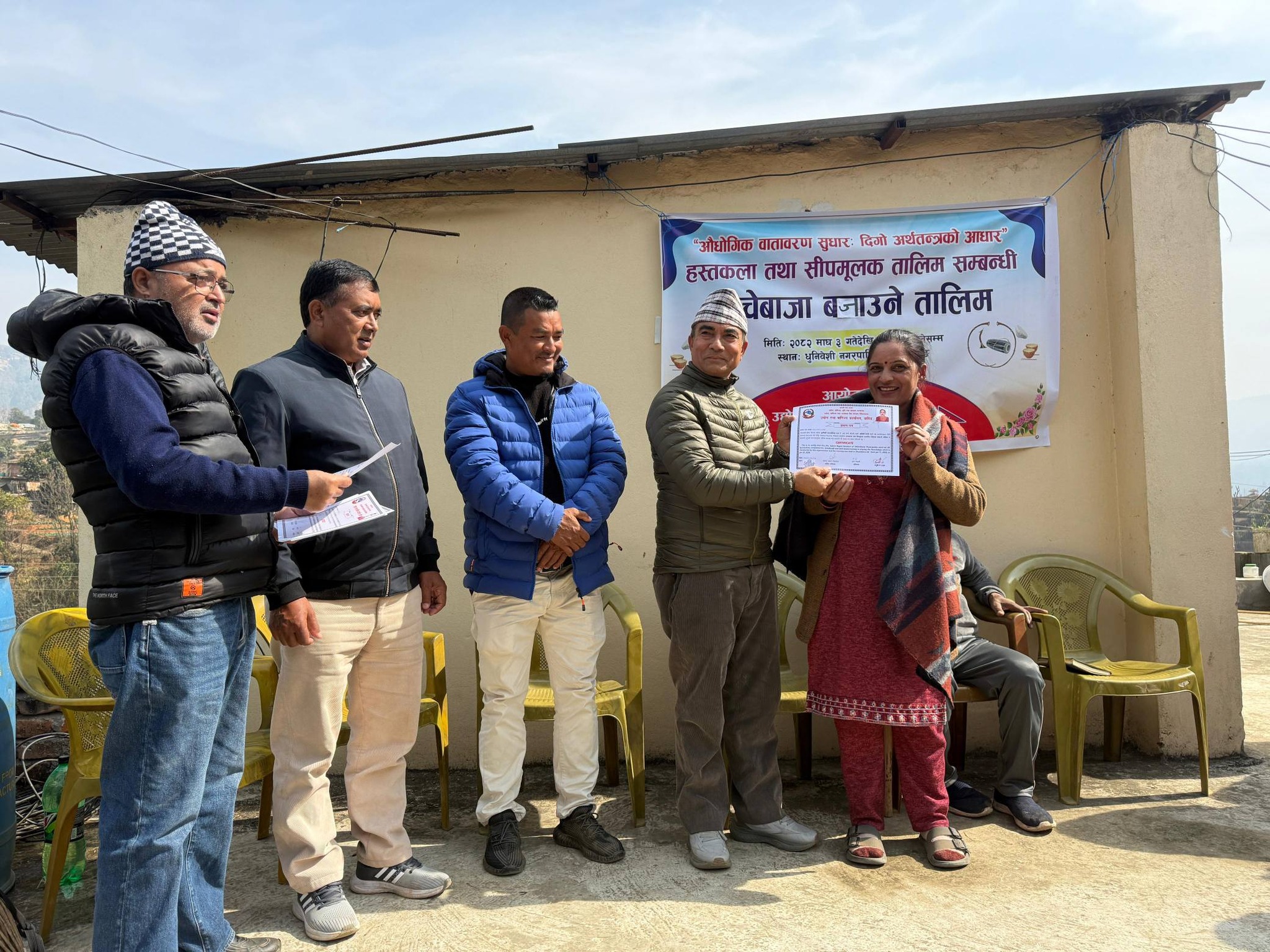 धुनिवेशी: धादिङको धुनिवेशी नगरपालिका वडा नम्बर ५ मा पञ्चेबाजा बजाउने सिपमूलक तालिम सम्पन्न भएको छ। उद्योग तथा वाणिज्य कार्यालय धादिङको आयोजनामा सञ्चालन भएको उक्त तालिम शनिबार समापन भएको हो।