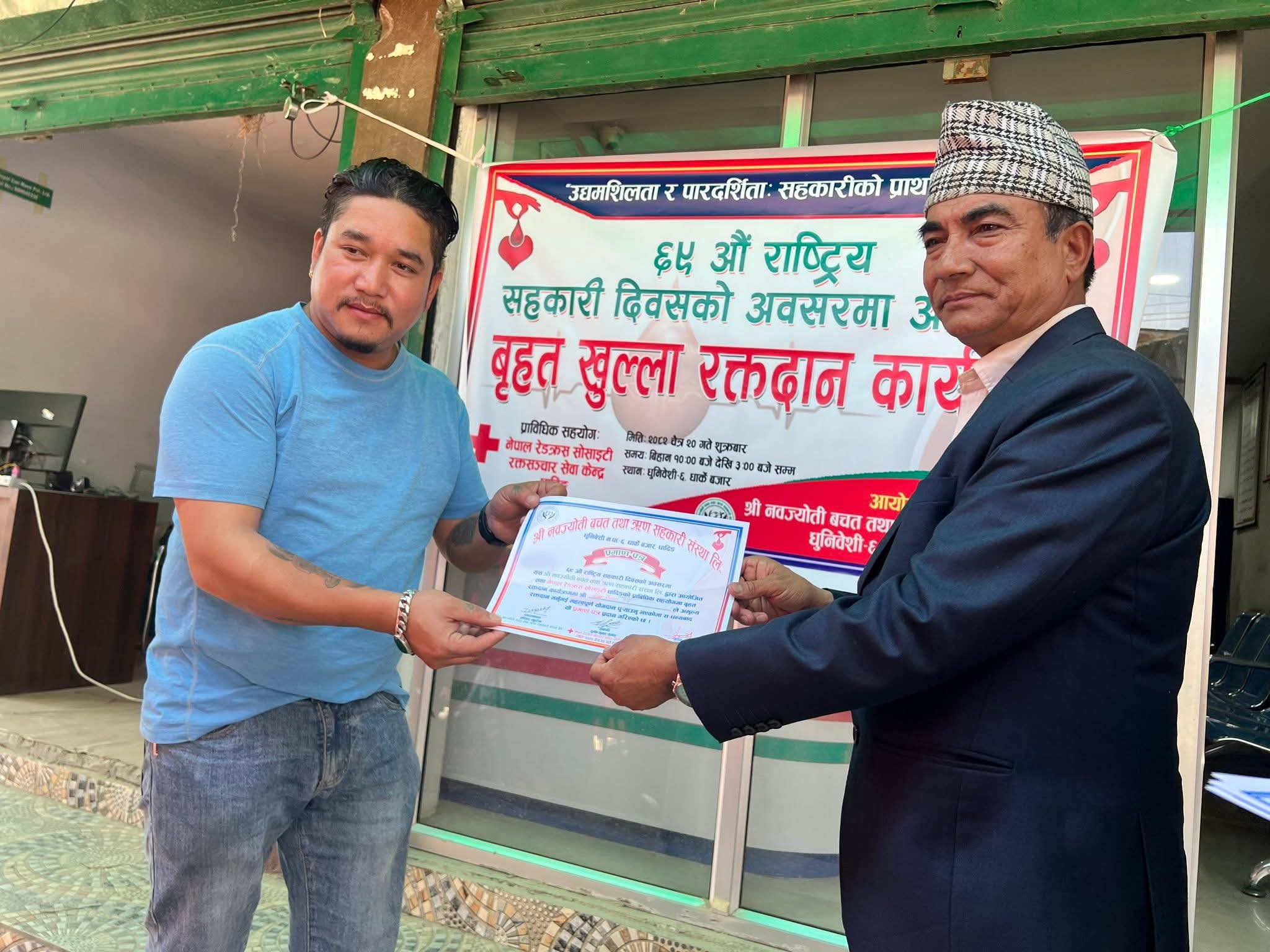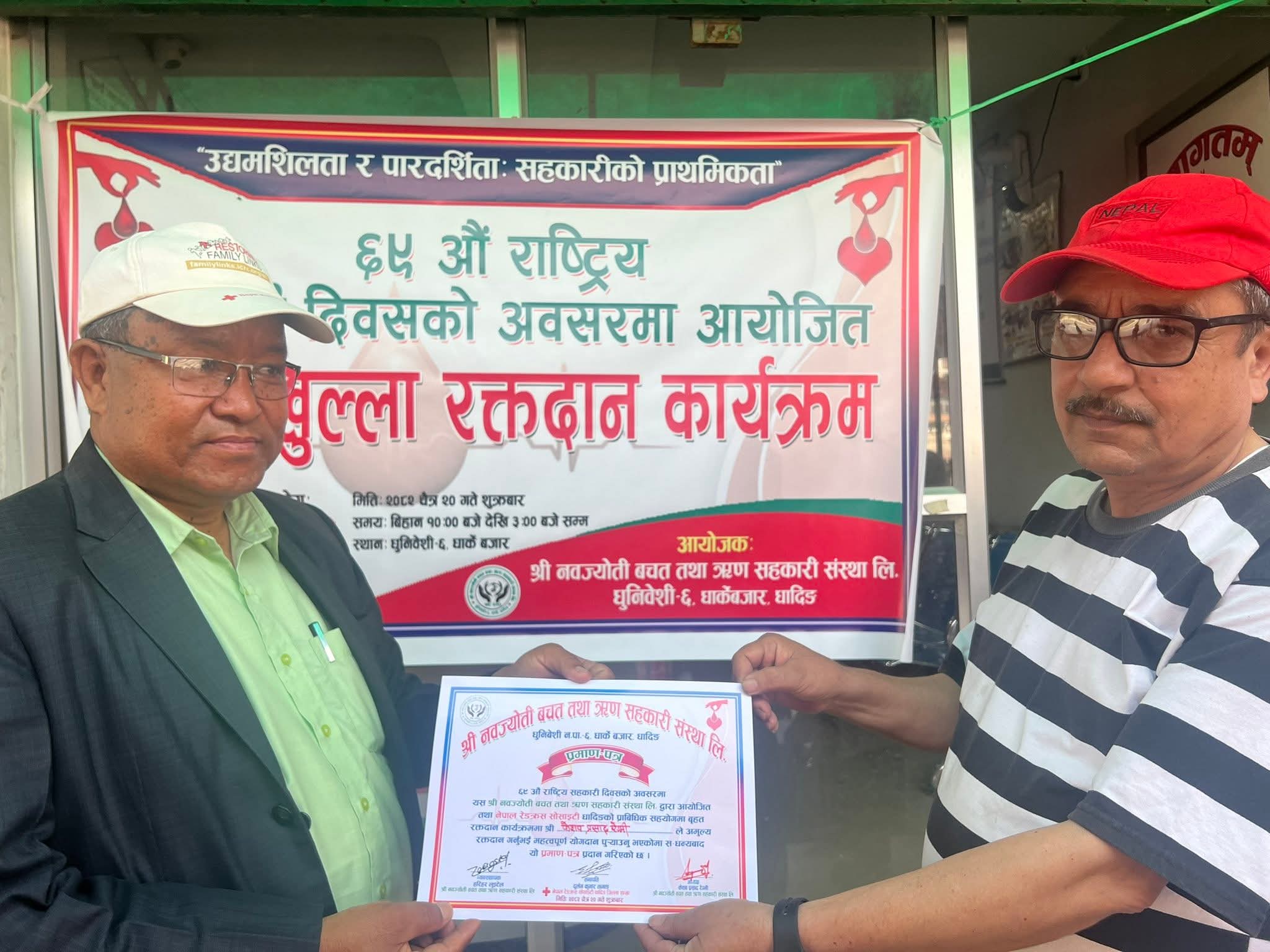 धादिङ : ६९औँ राष्ट्रिय सहकारी दिवस २०८२ को अवसर पारेर नवज्योति बचत तथा ऋण सहकारी संस्था लिमिटेडको आयोजनामा रक्तदान कार्यक्रम सम्पन्न भएको छ।